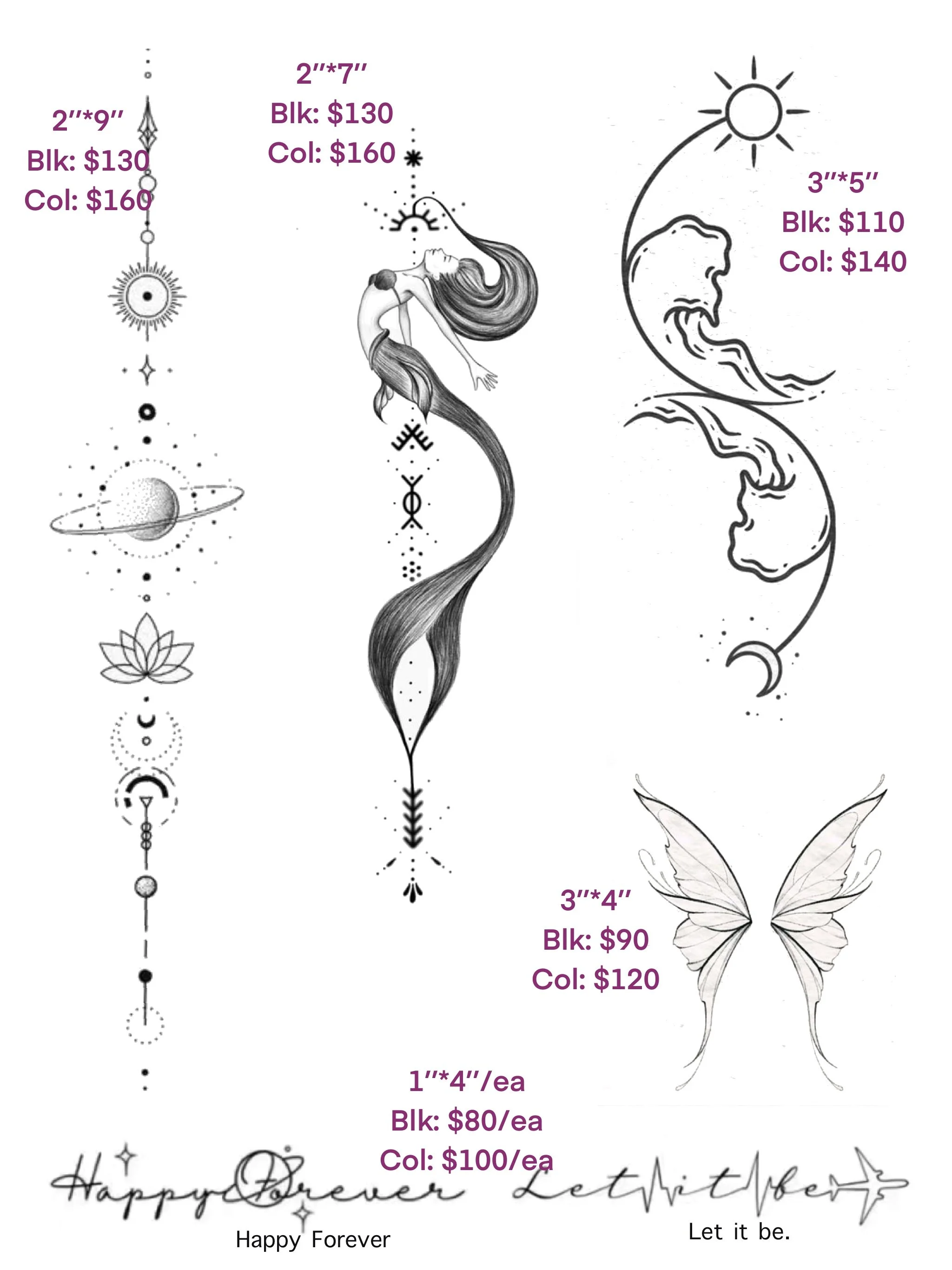 For all flash pieces, need to make an Appt with a deposit of $50-$120(depends on total), rest of payment please pay by cash in person when it’s finished.